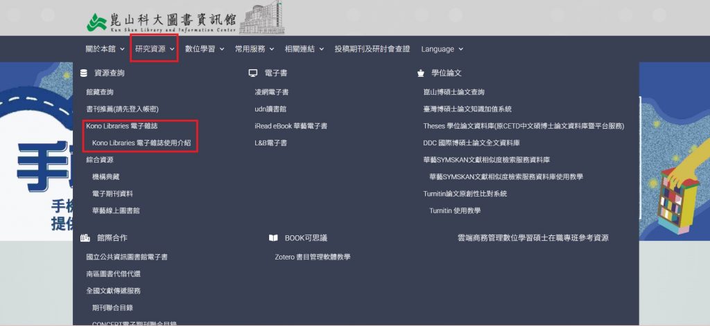 專屬網址:https://library.thekono.com/ksu/libraries/chinese