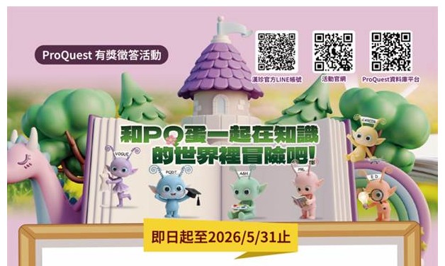 2026 ProQuest 有獎徵答活動,和PQ蛋一起在知識的世界裡冒險吧 !